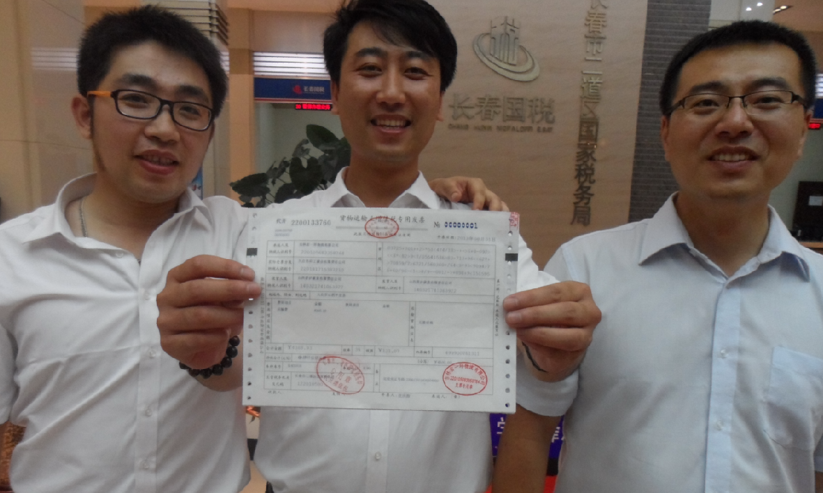 2013年8月1日零时许,“营改增”试点纳税人之一的吉林省亚通物流有限公司顺利开出第一张货物运输业增值税专用发票,吉林省中实环保工程开发有限公司顺利开出第一张现代服务业增值税专用发票;长春市二道区国家税务局为吉林省一环物流有限公司成功代开第一张货物运输业增值税专用发票(代开),为长春市鼎丰工程机械设备租赁有限公司成功代开第一张现代服务业增值税专用发票(代开),标志着吉林省营改增试点顺利启动。同一时间,吉林市、四平市、辽源市、通化市、长白山等地试点纳税人自开发票和国税机关代开发票均顺利开出,“营改增”试点在全省全面启动并平稳运行,这不仅标志着吉林省“营改增”的开始,也标志着吉林省百旺金赋阶段性工作的成功。